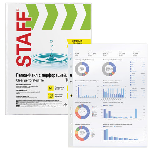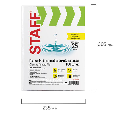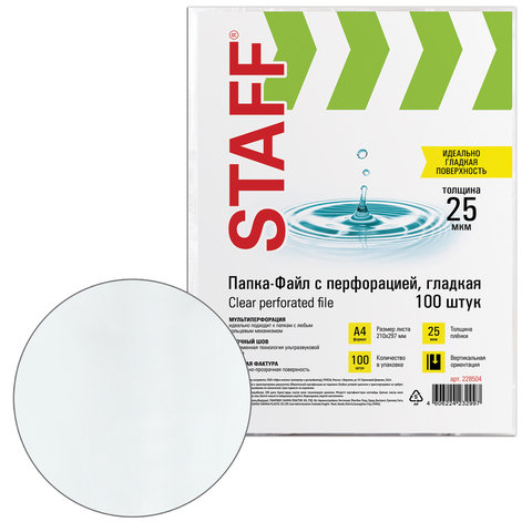 Папки-файлы перфорированные А4 STAFF "Clear", набор 100 шт., гладкие, 25 мкм, 228504